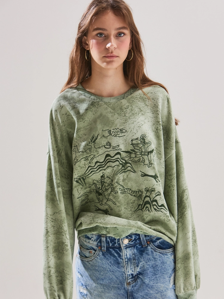 수렵도 스웻셔츠_카키 / Royal hunting scene sweatshirt